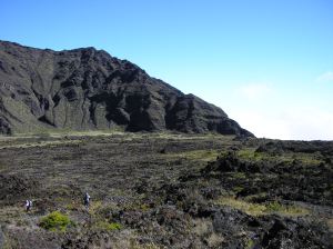 Even the experienced hikers rated our third day the worst ever. The windy rain started at 2 AM and continued steadily until dinner. We hiked 6.3 miles uphill/northwest to the Holua cabin, wearing rain ponchos that merely divided the soaking between rainfall & sweat. The first mile of the trail was ankle-deep in rainwater and the entire day exercised our survival skills. Of course the rain stopped as soon as the last hiker made the cabin. Holua cabin is by a quarter-mile lava tube, and a cave in the surrounding hills was the first Haleakala shelter for the ancient Hawaiians. But we spent most of that evening drying our gear and warming up, not necessarily in that order.
