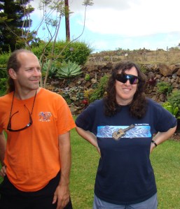 The final day we hiked out a 3.9-mile trail cut into the side of the crater. I lost count of the switchbacks and the ridgelines. We gained 1600 feet of altitude at two hiking speeds– “slow” and “stop”– and everyone’s legs/feet were sore. The trail ended at a parking lot where we’d stashed a car to ferry us the final 2000 feet back up to the summit. We showered at one of the local hiker’s homes, lunched in Makawao, and shopped or hung out for a few hours before the group split up. Spouse and I bookended our stay with nights at the rustic Kula Lodge.