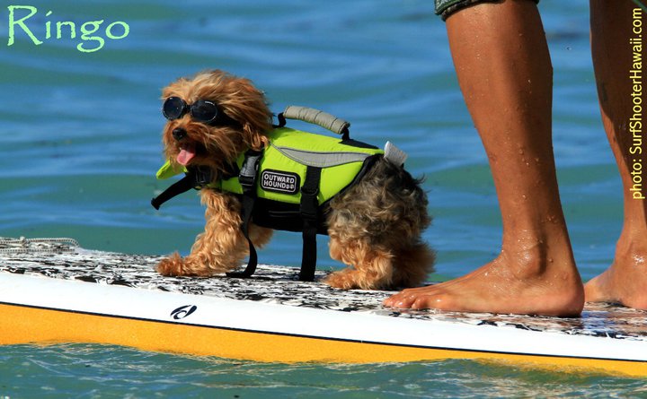No, wait, that’s Ringo the stand-up pup wearing his Doggles and his Outward Hound personal flotation device. He regularly brings his owner down to White Plains Beach, too, and he’s a chick magnet (Ringo, not his owner) with his cool surf-dog gear. (Kids, check with your parents before trying this on your pets!) I’m jealous that Ringo can hang 20 anytime he wants. You can see more Ringo photos here.