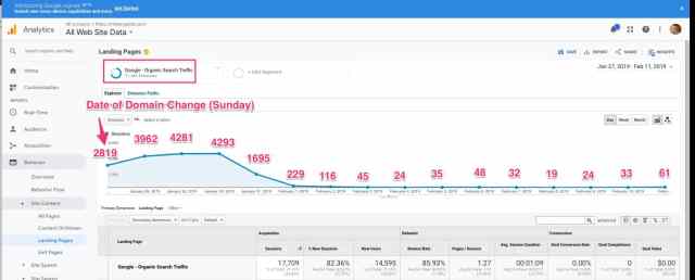 - I expected to see a 30% – 50% traffic drop with the domain change. The 40% traffic drop did not concern me.